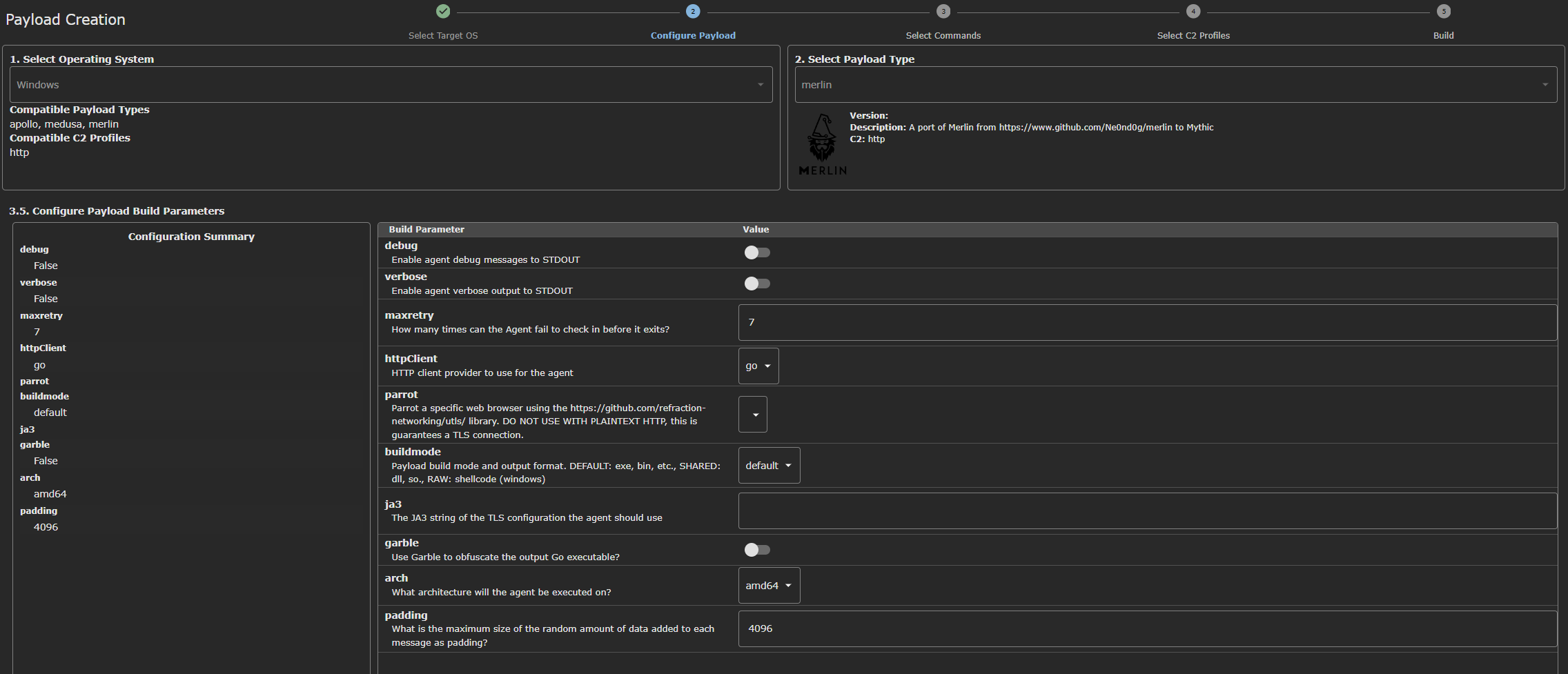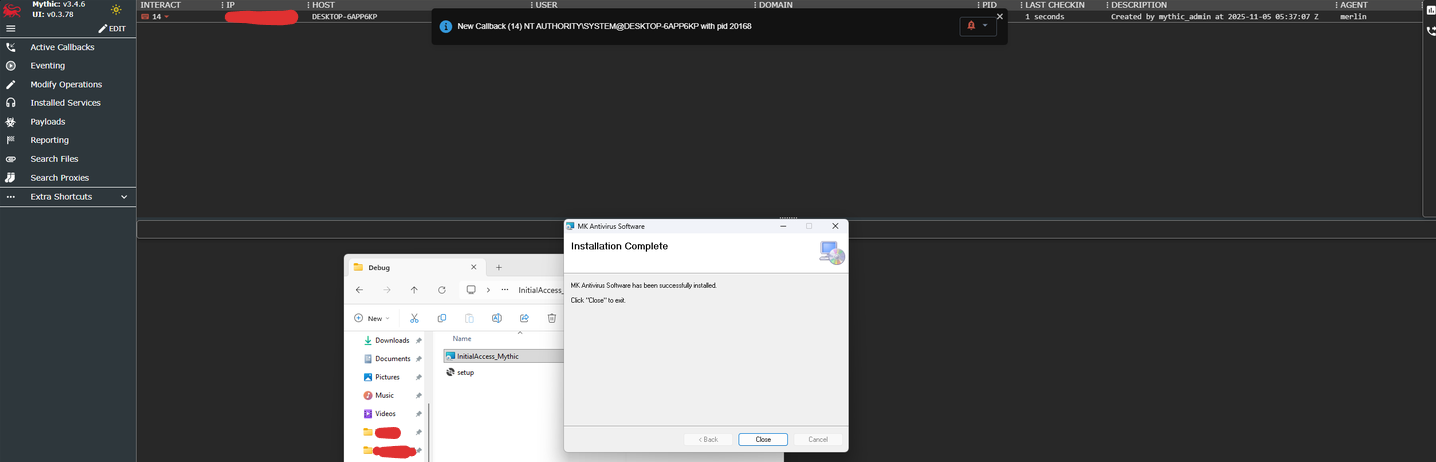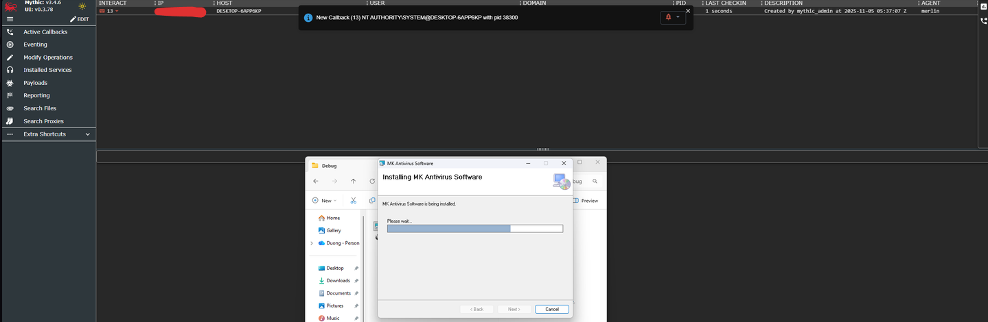Here in this demonstration, I will ultilize MythicC2 for the stage 1, the reason for this is Merlin agent, this agent is lesser well-known and it can fly through AV like nothing, another thing is, this agent has less functions compares to other which is lightweight and fit for the requirements of the stage 1 beacon.
